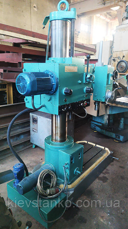Відмінною особливістю верстата даного типорозміру є наявність поворотної колони та монтаж каретки свердлильної головки на направляючих рукава на підшипниках кочення, що значно підвищує зручність експлуатації верстата.